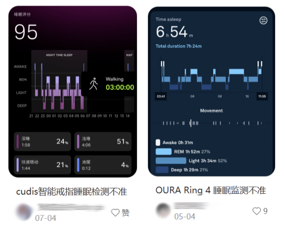 而当你可以掌控自己什么时候睡觉、什么时候起床,一个精准、量化的睡眠指标又显得没有必要了,甚至当感受和App上的分数不一致时,有人会困惑到底该相信自己的感受还是戒指上的数字。“明明能睡得很满足的醒来,为什么还要在乎今天的睡眠质量是80分还是85分?”
