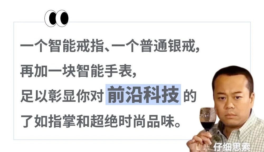 而如果你恰好是一个活跃在金融领域的科技男,两只手上分别戴一个智能戒指、一个普通银戒,手腕再戴一块智能手表,则可以彰显你对前沿科技的了如指掌和超绝时尚品味。