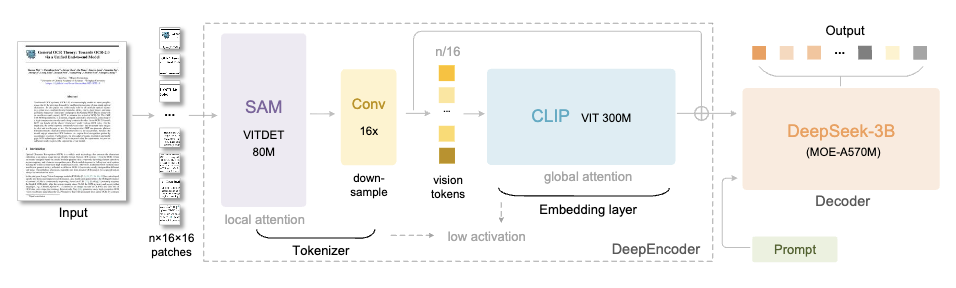 DeepSeek3B-MoE:负责从压缩后的视觉Token中重建文本。