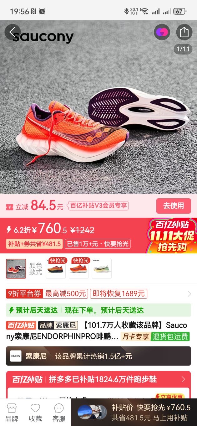 saucony 索康尼 啡鹏4男鞋碳板跑步鞋[经销商] 拼多多[产品售价] ¥760.5元进入购买[#zolsplit_ecb电商推广区域分隔符结束#]