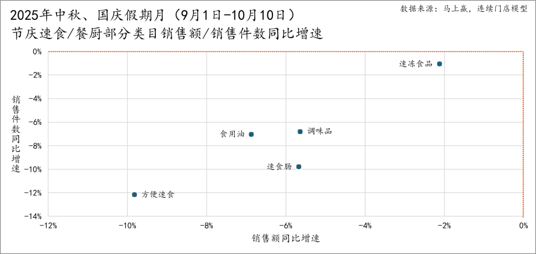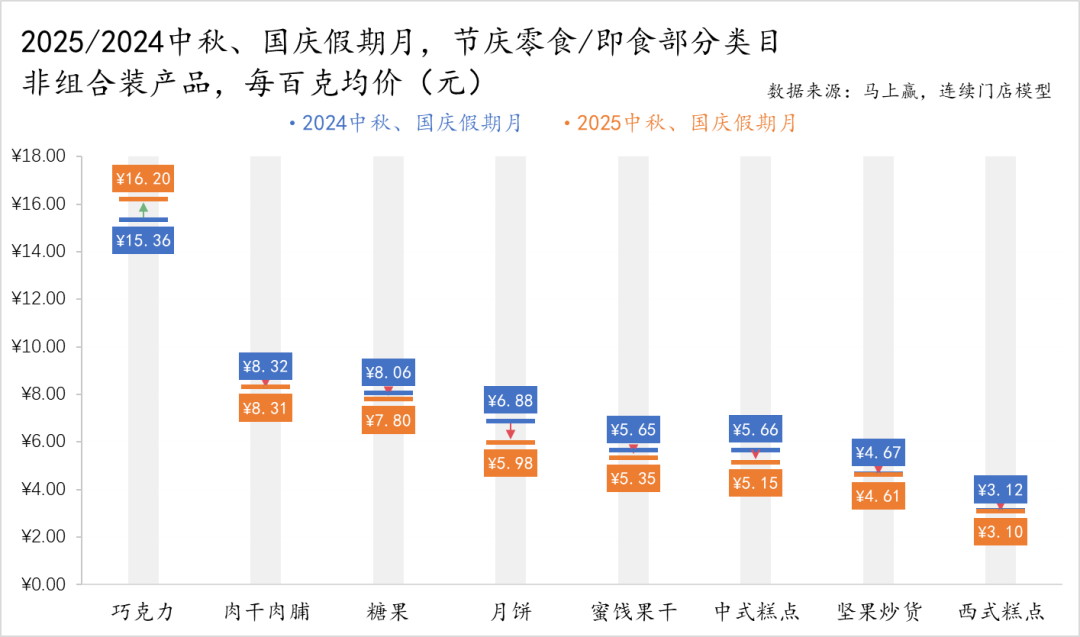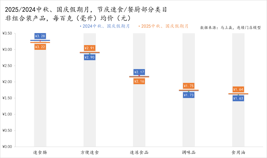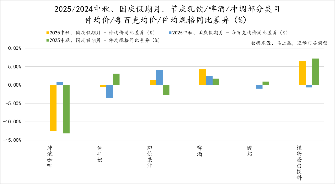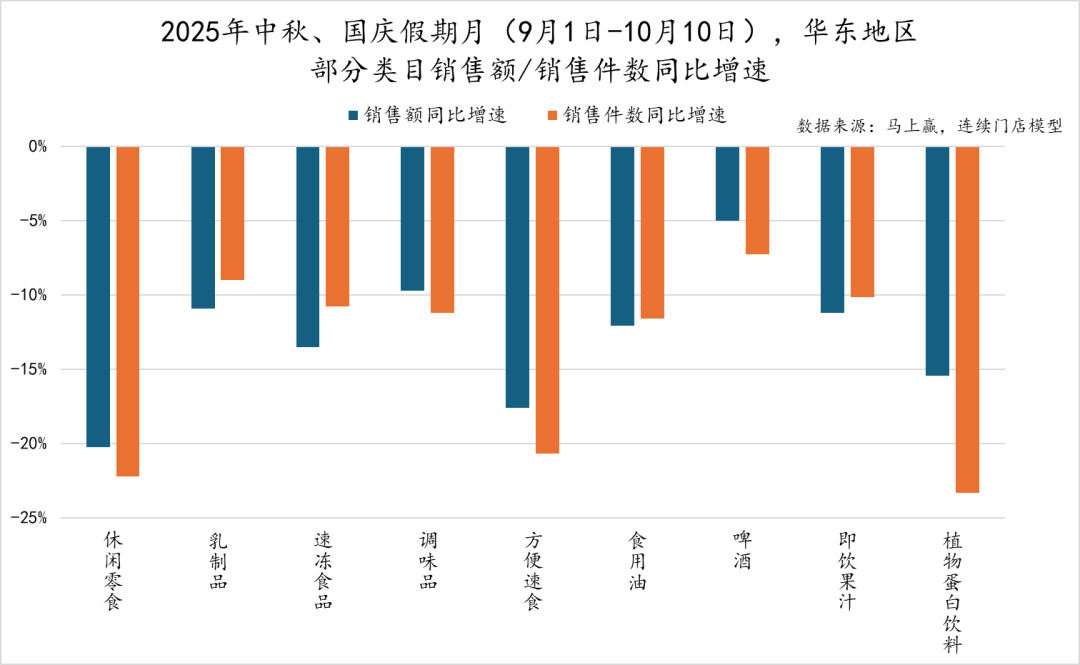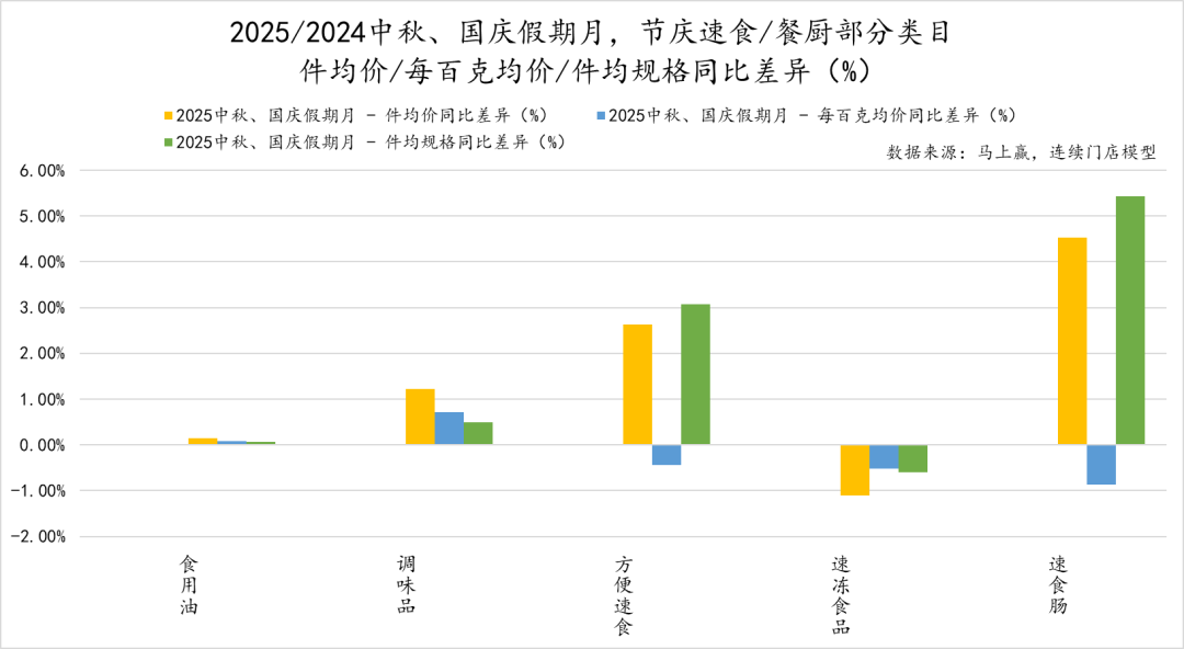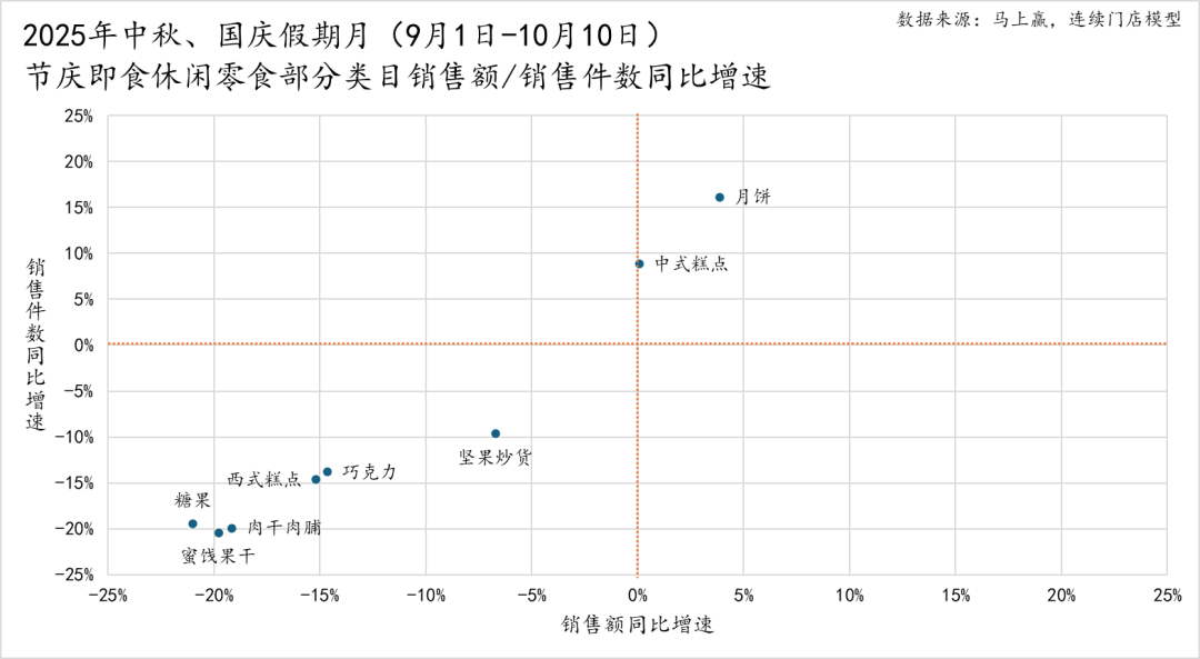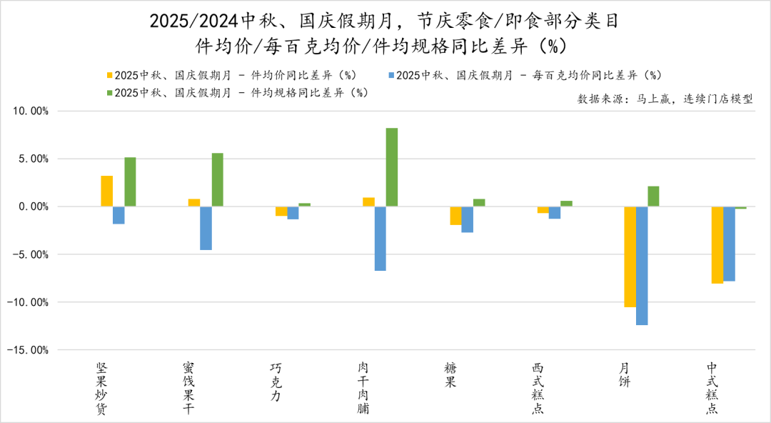 需要特别说明的是:2024年中秋节在9月月中,2025年中秋节在国庆期间,两年相比月饼等节庆风俗食品的消费期少了近一半,但由于国庆的时间均为10月1日-10月7日,因此再三权衡以上述时间段设置观察周期,已知的影响是“2025中秋、国庆假期月”时间段节庆风俗食品数据表现情况偏好(包括但不限于月饼)。
