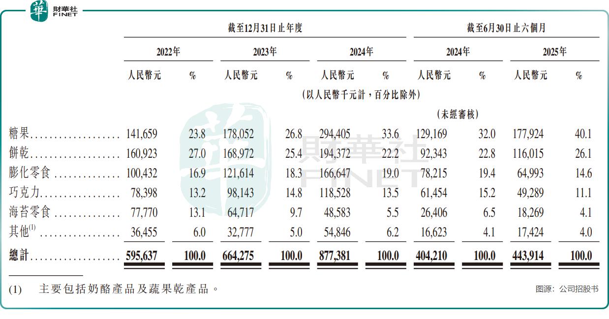 另一方面,公司近年增长主要由糖果和饼干两大品类驱动。2025年上半年,这两类产品合计贡献66.2%的收入,成为业绩增长主引擎。