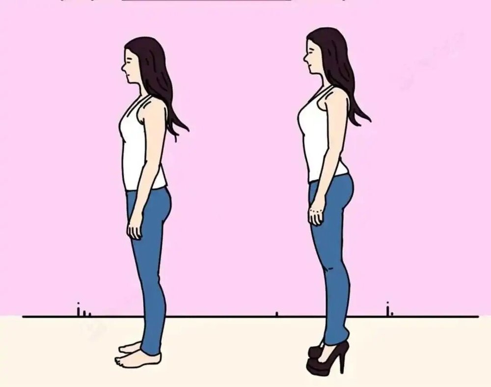 高跟鞋在此之后就逐渐成了女性的专属用品。穿上高跟鞋后,小腿线条更纤长,而因重心前移,女性不得不挺胸翘臀。
