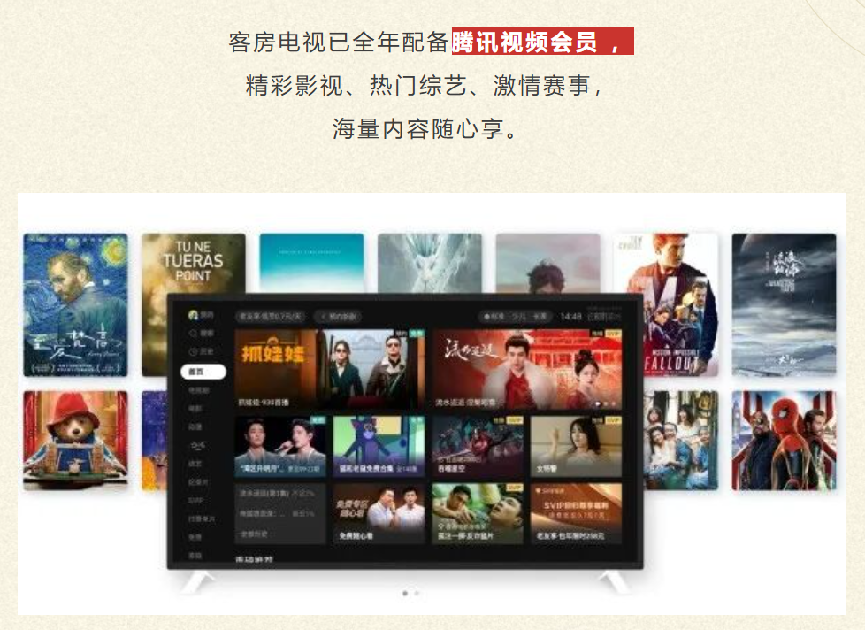 影视可能仅占手机平板和电脑每天内容消费的一小部分。但是在商用电视大屏场景,其营业时间基本就是影音内容消费的时长,从开店到打烊都在直播电视,或是让住客点播、投屏。
