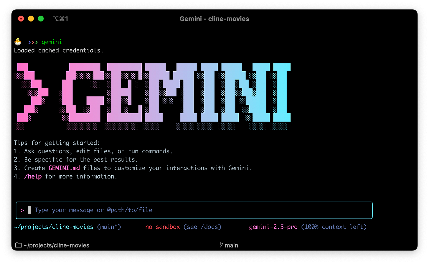 Gemini CLI is an open-source AI assistant that brings the power of Google’s Gemini model directly into your terminal. It functions as a conversational, “agentic” command-line tool - meaning it can reason about your requests, choose tools (like running shell commands or editing files), and execute multi-step plans to help with your development workflow.