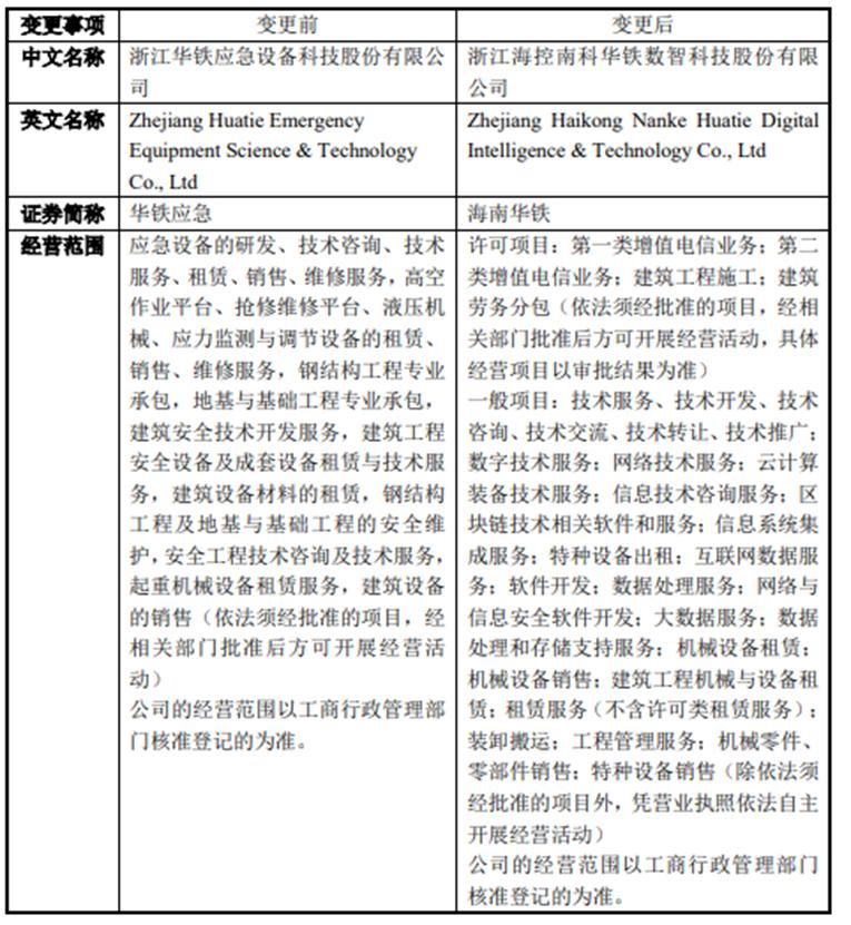 易主海南国资后不久,华铁应急将公司名由“浙江华铁应急设备科技股份有限公司”改名为“浙江海控南科华铁数智科技股份有限公司”,即海南华铁。同时调整工商登记的经营范围,全力向算力转型。
