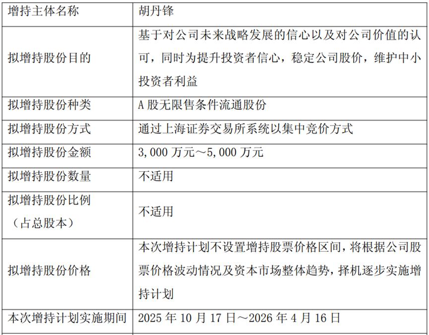 海控产投的一致行动人海南金控计划增持2500万至5000万元,胡丹峰计划未来6个月内,使用其自有资金及自筹资金,增持3000万至5000万元。