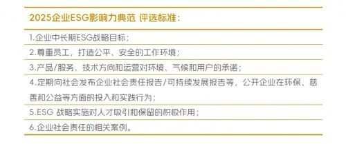 📊企业“ESG影响力典范奖”是前程无忧典范雇主单项奖中最受关注和最具竞争力的奖项之一,其严苛的评选标准确保了获奖企业的卓越性和行业代表性。