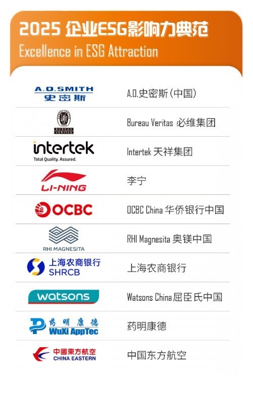 🏆A.O.史密斯(中国)首次荣获2025前程无忧“企业ESG影响力典范奖”,这标志着其在环境保护、社会责任、产品创新及人才培养等方面的努力获得了高度认可。