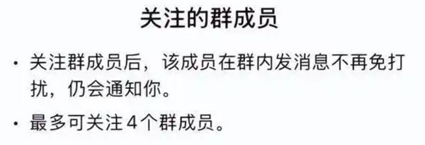 在群聊消息免打扰功能方面,用户可在群组中选择最多四位成员进行关注。一旦被关注的成员在群内发言,系统将自动推送通知,打破原有的免打扰状态,确保重要发言不会被遗漏。