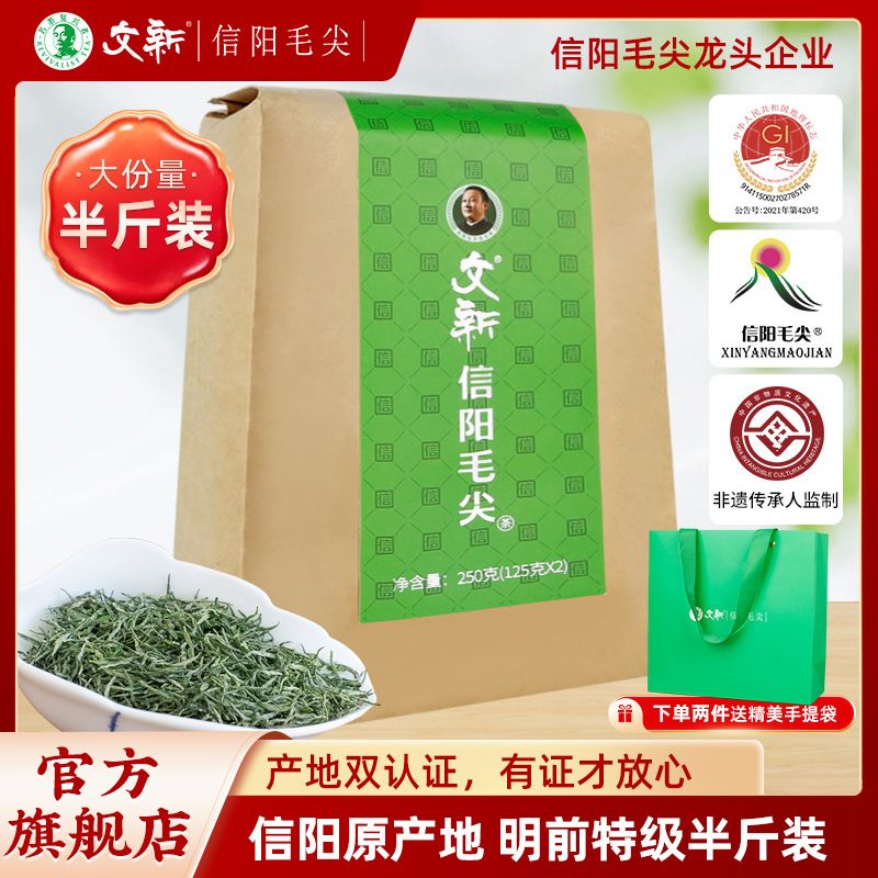 文新信阳毛尖特级250g现正参加百亿补贴优惠活动,品质出众口感醇香,茶叶条索紧细色泽翠绿,汤色清澈明亮,香气清高持久,回甘明显,是春茶中的上品之选。