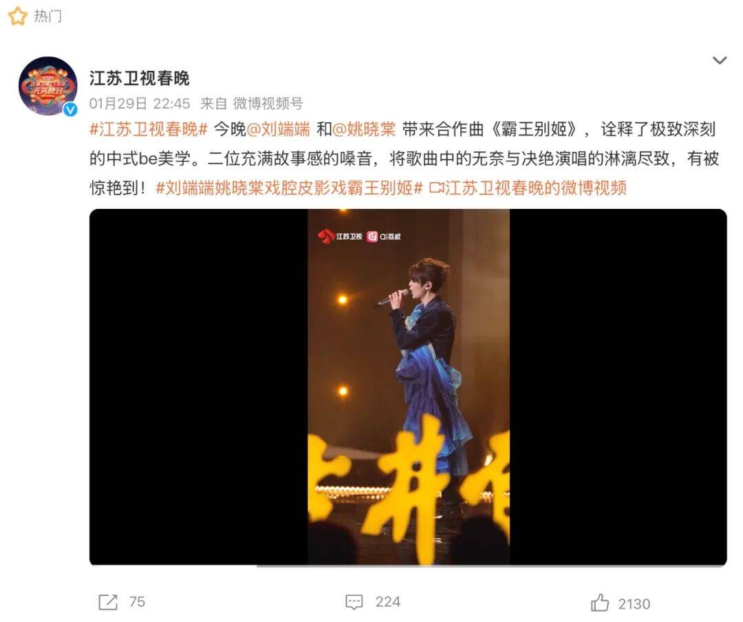 比如由薛之谦作词作曲、刘端端和姚晓棠共同演唱的《霸王别姬》,通过戏曲唱腔嫁接现代摇滚的动情演唱、现代语境解构重构项羽悲情的扎实表演成就了一个“封神舞台”,这首新歌小爆的破圈程度也借由薛之谦演唱会将其选为多场安可曲、薛张版本歌曲KTV点唱率持续霸榜等“热度证据”得以证明。
