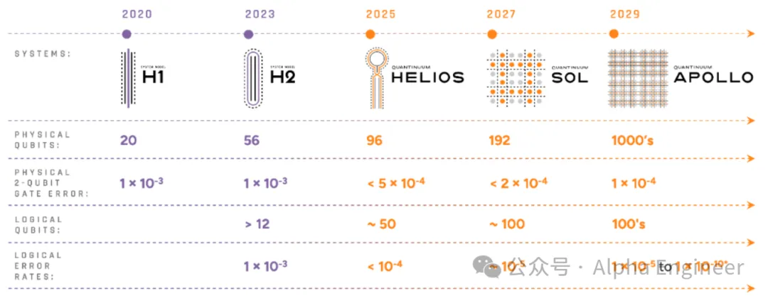 Quantinuum商业化路径相对清晰, 计划于2025年发布新一代系统Helios,并设定了2027年实现100个逻辑量子比特、并在前后启动IPO的明确目标。