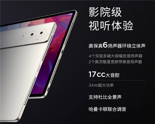 🎧 **哈曼卡顿调校的环绕声场:** 该平板打破常规,采用了哈曼卡顿六扬声器系统,并经过专业音频团队调校,支持杜比全景声技术。这使得在观看电影或听音乐时,能够清晰地分辨出声音的方位和层次,无论是紧张刺激的动作场面还是细腻的情感表达,都能提供身临其境的听觉体验,彻底告别了传统平板单薄的音质。