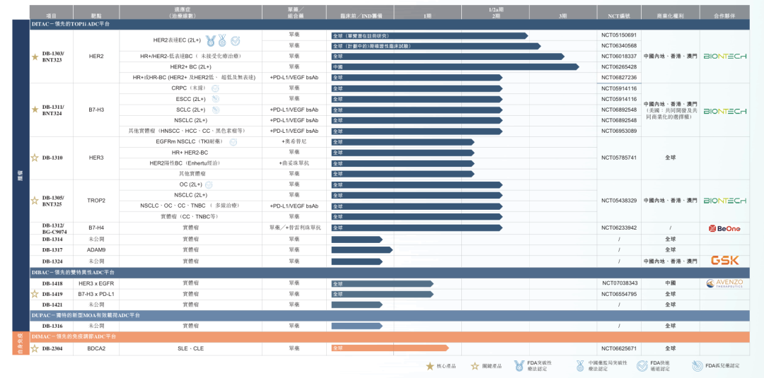 研发方面,该公司打造了四大领先ADC技术平台,即免疫毒素抗体偶联平台(DITAC)、创新双特异性抗体偶联平台(DIBAC)、免疫调节抗体偶联平台(DIMAC)、独特有效载荷抗体偶联平台(DUPAC),拥有持续创新(如多元的管线布局)与价值创造(如BD交易持续落地)的基础。
