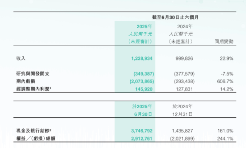 今年上半年,公司实现总营收12.29亿元,同比增长22.91%,期内亏损额则达到20.74亿元,接近2024年亏损额的两倍,去年同期这一数字还只有2.93亿元。