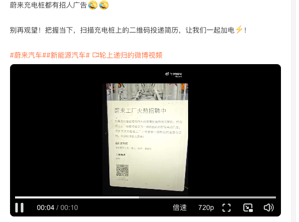 近期,一份群聊记录也显示,蔚来合肥工厂正在紧锣密鼓地进行招聘。甚至出现办公室坐不下,需要去食堂以及室内篮球场里进行上百人群面招聘的场面。有用户在社交媒体上分享,蔚来充电桩上都出现了工厂火热招聘的信息。