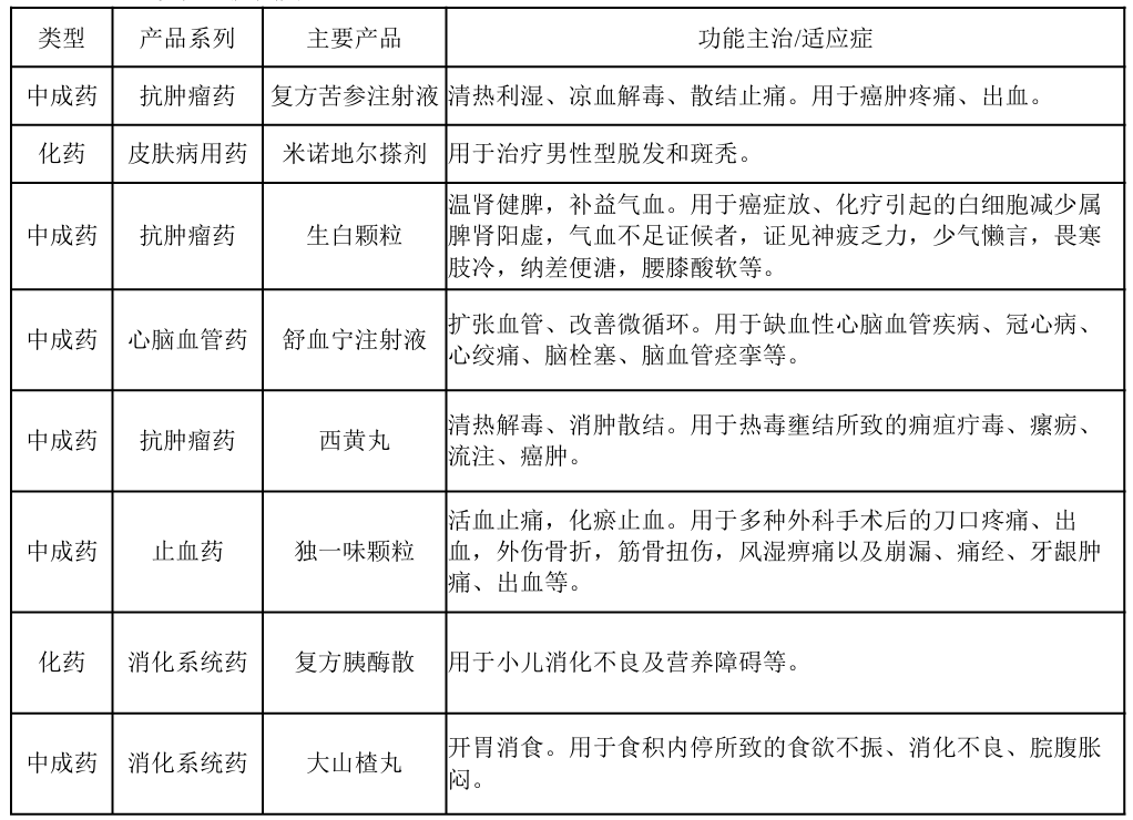 其中,报告期及去年同期销售额占公司主营业务收入10%以上的药品有两款,复方苦参注射液和达霏欣米诺地尔搽剂。