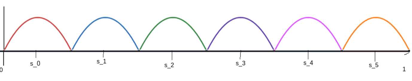 We set up M+1<n "sentry points" {si}Mi=0 uniformly along [0,1]. And we define g:[0,1]→[0,M]∩Z sending t∈[0,1] to the index of the closest sentry point.