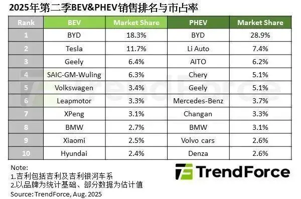 结果是,比亚迪在全球插混市场的份额依然领先,但市占率由近40%降至28.9%(TrendForce集邦咨询),丢失的份额主要被吉利、问界等品牌瓜分。