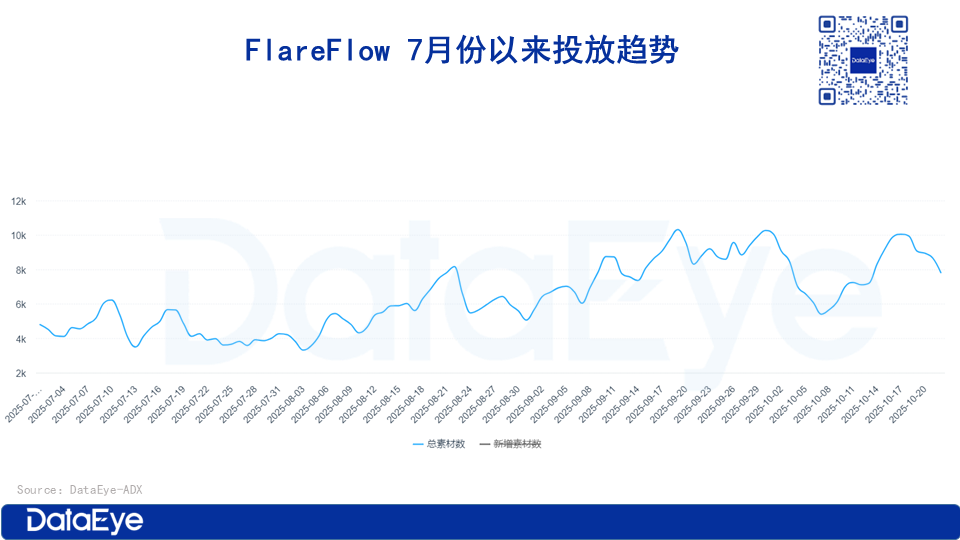 1万组左右,近期略有回落。自4月以来,FlareFlow累计投放了超14万组素材。