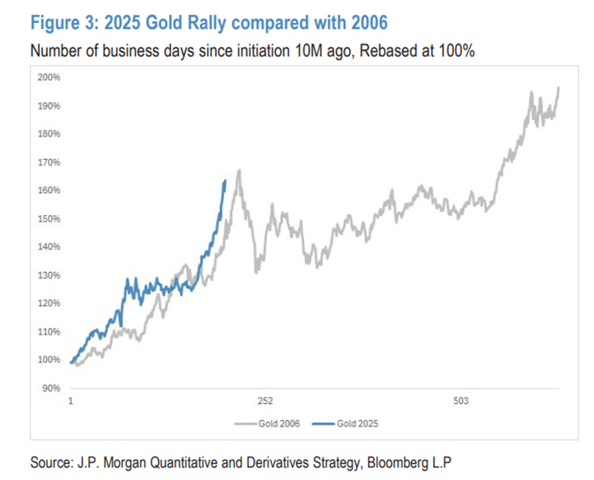 摩根大通商品团队认为,金价当前的回调是健康的,不改其“多年结构性牛市”的根本看法。从技术角度看,金价已回落至3944-4000美元区间的首个关键支撑位。同时,基本面上的买盘力量预计将很快浮现。摩根大通量化团队则警告称,黄金ETF期权市场出现了创纪录的空头Gamma失衡,且本轮金价的涨势无论在幅度还是速度上,都与2006年高度相似,当时金价在暴涨后经历了30%的深度回调。