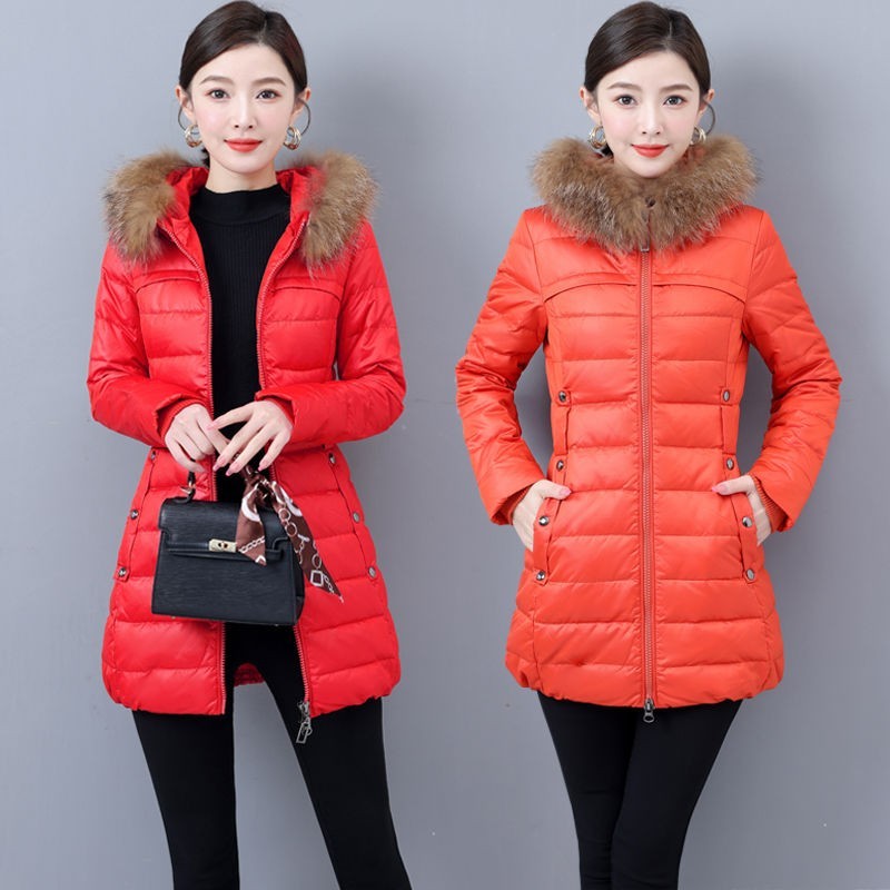 这款无品牌女士时尚修身中长款连帽羽绒服,专为女士设计,款式时尚又修身,中长款的版型能够很好地修饰身材。连帽设计既增添了时尚感,又能在寒冷天气为头部提供额外温暖。
