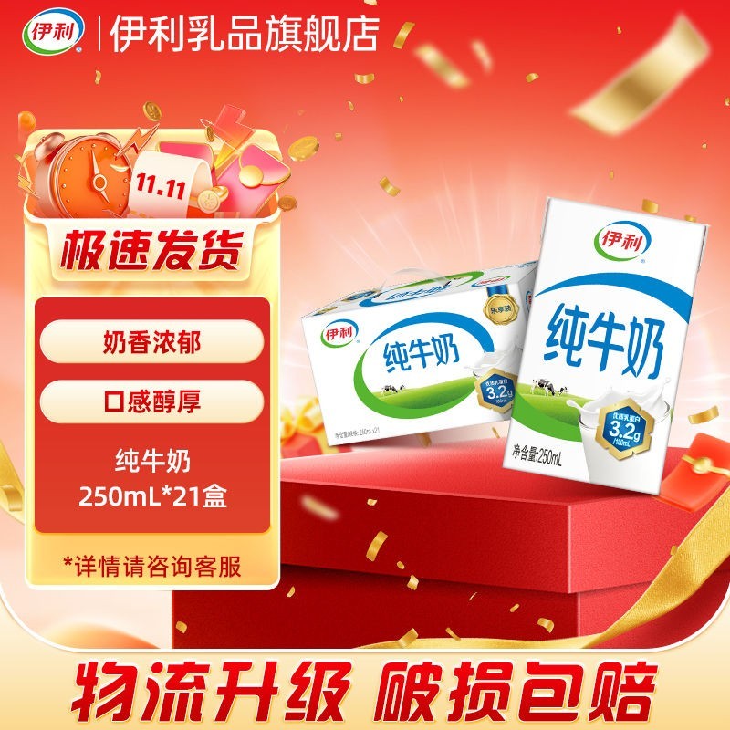 伊利纯牛奶每盒250ml,每箱有21盒。这款牛奶一直以来都备受消费者青睐,它品质优良,口感醇厚,富含丰富的蛋白质等营养成分,能为身体补充每日所需的营养。
