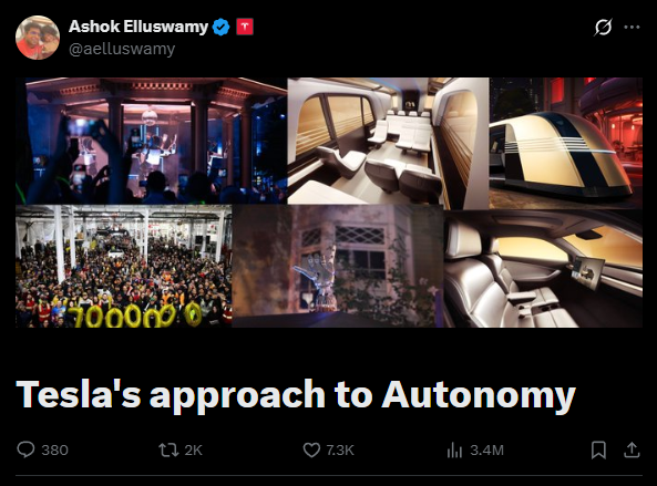 10月25日,特斯拉AI负责人阿肖克·埃卢斯瓦米(Ashok Elluswamy)在X上发布长文,揭秘了特斯拉FSD的技术方法论,信息量非常大。
