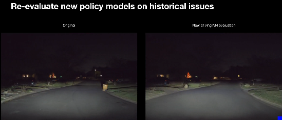 幸运的是,特斯拉凭借其庞大的车队,拥有如尼亚加拉大瀑布般的海量数据。整个车队每天总共能产生相当于500年驾驶时长的里程数据。并非所有数据都有价值,也不可能接收所有数据。因此,特斯拉使用复杂的数据引擎流水线来筛选最有趣、最多样化和最高质量的数据样本。下面是这类数据的一小部分示例。