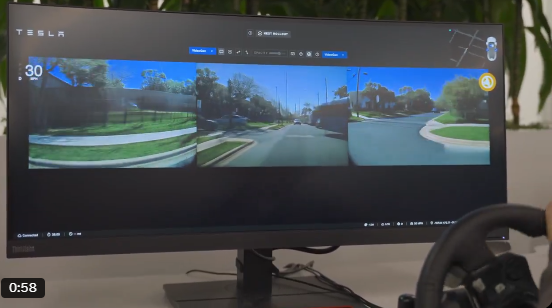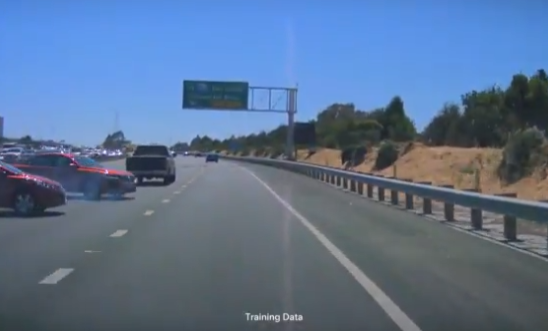 如果你用这样的数据进行训练,你将获得对极端案例(corner cases)极强的泛化能力,而这是用其他方法难以实现的。这里有一个例子,展示了AI模型如何学会主动规避一次潜在的碰撞。视频中令人印象深刻的是,AI在第5秒左右就做出了反应,而那时情况还远未明朗到会升级为碰撞。AI需要理解到:外面在下毛毛雨,前车可能正在失控打滑,它可能会撞上护栏然后反弹回自车的行驶路径上,因此现在就应该谨慎刹车。只有一个能力极强的AI系统,才能如此提前地预测到这类二阶效应(second order effects)。