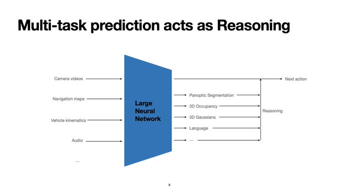 语言解释:训练AI用自然语言来解释自己的行为。一个小型化的语言推理模型,其实已经在FSD v14.x版本中运行了。
