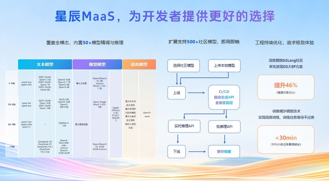 ⚙️ MaaS平台升级:提供文本、语音、视觉多模态模型支持,内置50+模型并允许扩展500+本地及社区模型,通过工程优化提升推理效率46%,大幅降低开发成本。