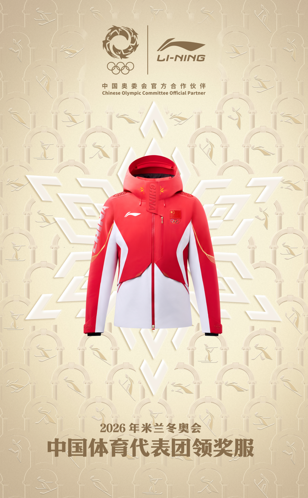 十月的尾声,这份决心迎来了具象的答案——10月24日,冬奥倒计时即将来到100天,李宁正式发布了2026年米兰冬奥会中国体育代表团的领奖装备。新装备以“中国红”与“雪山白”为主色调,将文化寓意与冰雪场景巧妙融合,令人眼前一亮。