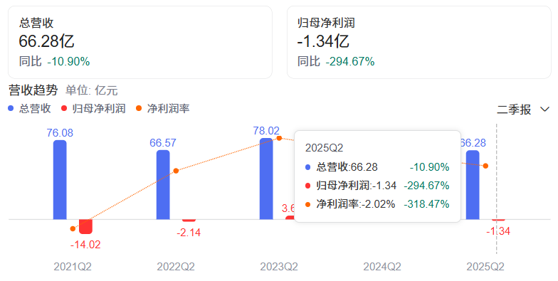 据爱奇艺今年第二季度财报显示,其会员服务、在线广告、内容发行三大核心业务板块全线下滑,实现季度营收66.3亿元,同比下降 11%;归母净利润亏损1.34亿元,较2024年同期盈利6870万元,同比下降幅度高达295.05%。