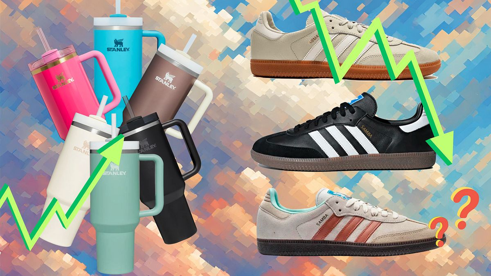 它们的热门程度无需多言。在这种矛盾消费观下,这些产品同时成为最受欢迎和正在过时的趋势之一。比如,近日的研究显示,Stanley保温杯在女性群体中排名本季最受欢迎趋势第二,但它也同时在正在退出的趋势名单排在第二。这可以解释为它“现在很流行,但也正在失宠”。