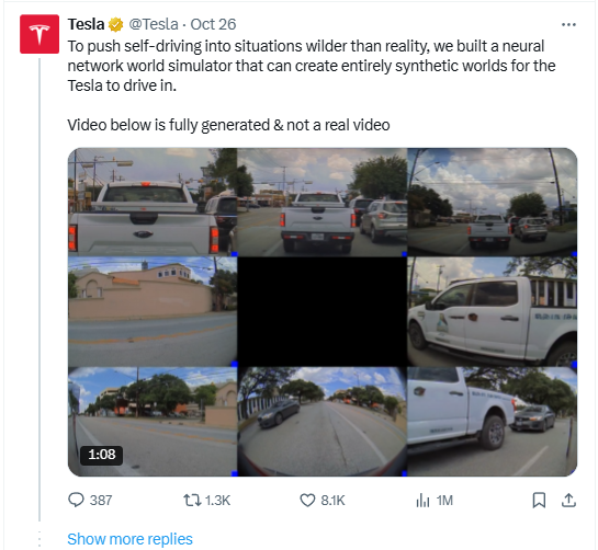 然而,这一战略路径也引发了新的市场讨论和投资者的疑虑。根据X上部分网友的评论,一些观点认为,如果模拟技术发展到可以高度替代真实世界数据,理论上竞争对手无需拥有庞大的车队,也能通过模拟足够多的场景来追赶特斯拉。