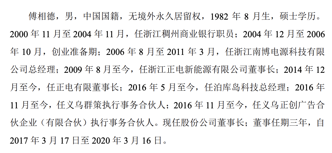 而傅相德执掌的正电股份,在新三板挂牌期间(2017.8-2019.4)主要从事UPS不间断电源储能系统的开发、集成业务。期间年营收在千万元级别,终止挂牌前处于亏损状态。2019年4月终止挂牌时给出的原因是“根据经营发展需要及长期战略发展规划,同时为降低经营成本,提高决策效率”。