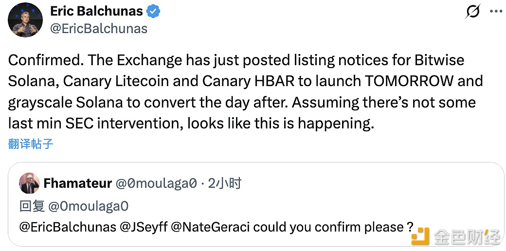 原文链接: https://x.com/EricBalchunas/status/1982870156696281334
