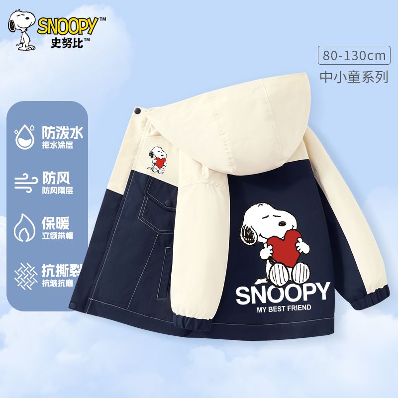 史努比2024新款男童春秋外套来啦!这是一款防风衣,也是婴幼儿夹克,非常适合儿童户外运动时穿着。