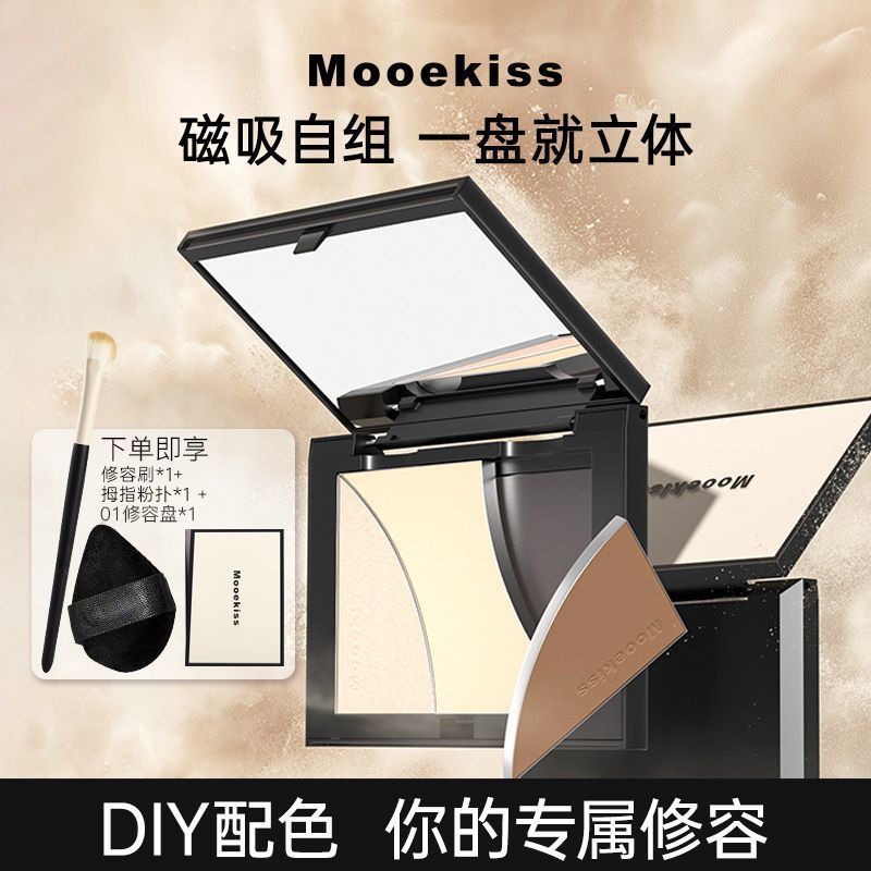 木柯诗 MOOEKISS 修容盘高光盘集哑光阴影与珠光提亮于一体,轻松打造立体脸部轮廓,显色自然服帖不飞粉,适合日常及化妆进阶使用,小巧便携设计方便随身携带补妆。