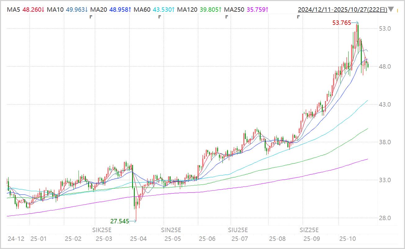 于是,白银价格从10月17日开始大幅下挫,仅三个交易日又跌回47美元,跌幅超过10%。