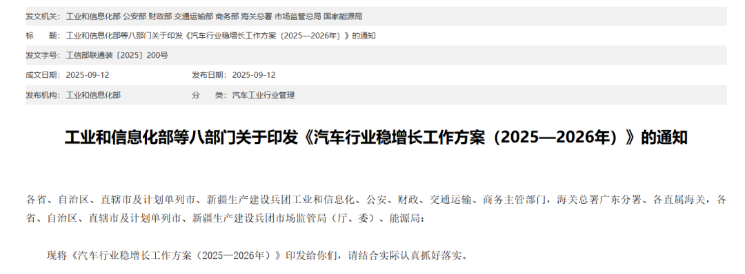 9月,政策进一步深化。工信部等八部门印发《汽车行业稳增长工作方案(2025—2026年)》,明确提出“有条件批准L3级自动驾驶车型生产准入”,标志着高级别自动驾驶在合规路径上取得关键突破。
