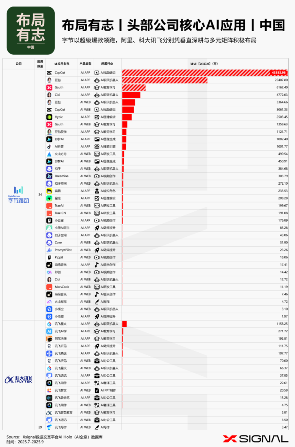 这是一张“路径分化”的战略地图。透过Xsignal的数据,我们看到,在经历了上半年的大浪淘沙后,AI应用的成功路径已清晰地分化为两条。其一,是巨头的“生态融合”,即将AI能力作为水和电,注入到社交、电商、内容等已有的巨大流量池中,通过“AI赋能”而非“AI革命”的方式,构筑了坚固的护城河。其二,是垂类的“工具深耕”,即在办公、设计、教育等专业领域,凭借对用户需求的极致洞察,打造出体验卓越的AI原生工具,实现了在细分市场的精准收割。