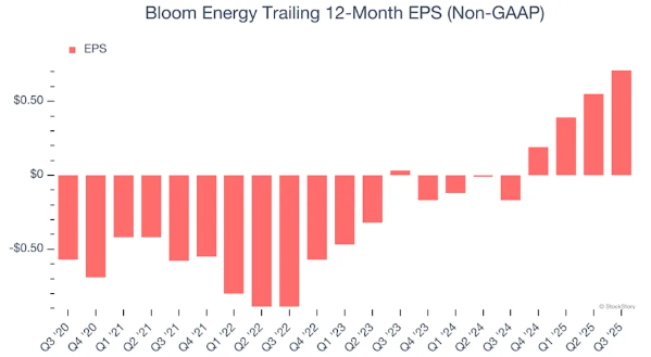 营收趋势能够说明一家公司过去的增长情况,但每股收益(EPS)的长期变化则能反映出这种增长的盈利能力——例如,一家公司可能会通过在广告和促销方面的过度投入来夸大其销售额。Bloom Energy过去五年内的每股收益从负值转为正值。这是一个好迹象,表明公司正处于转折点。