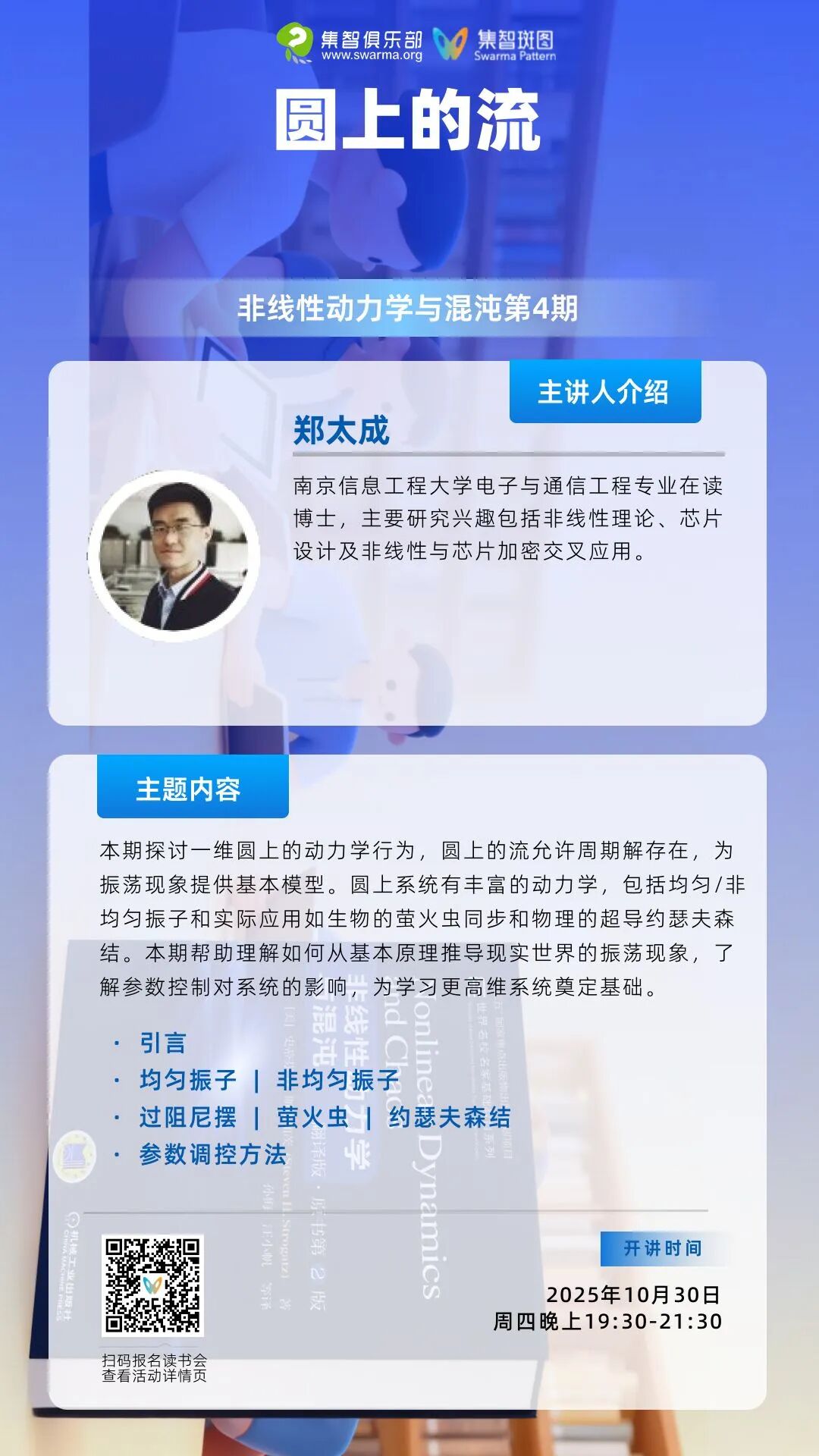 扫码参与「非线性动力学与混沌」读书会,加入社群,获取系列读书会永久回看权限,与社区的一线科研工作者沟通交流,共同溯源复杂科学的思想脉络。