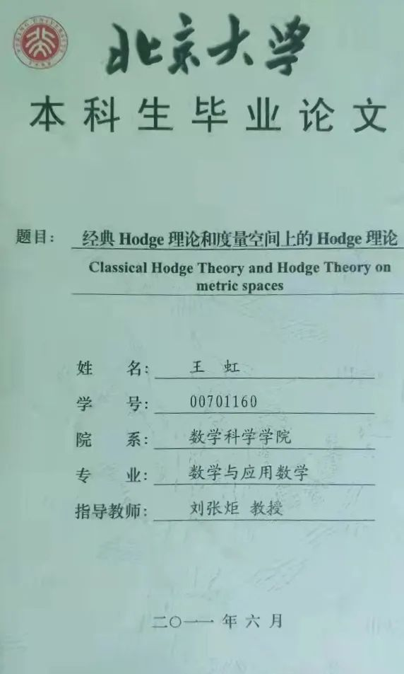 在此期间,她的导师是王立中教授,并在刘张炬教授指导下完成了「经典Hodge理论和度量空间上的Hodge理论」的毕业论文。