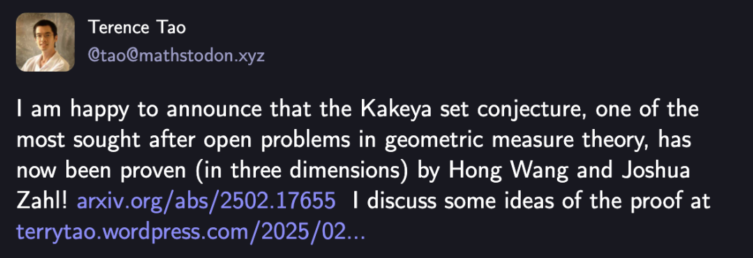 但从各方判断,其获奖可能性非常高。毕竟,挂谷猜想是数学界最著名的公开难题之一。