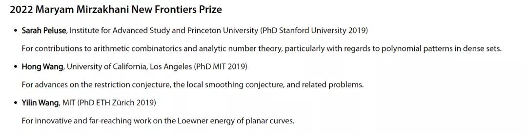 这个奖项专门表彰过去两年内获得博士学位的杰出女性数学家。