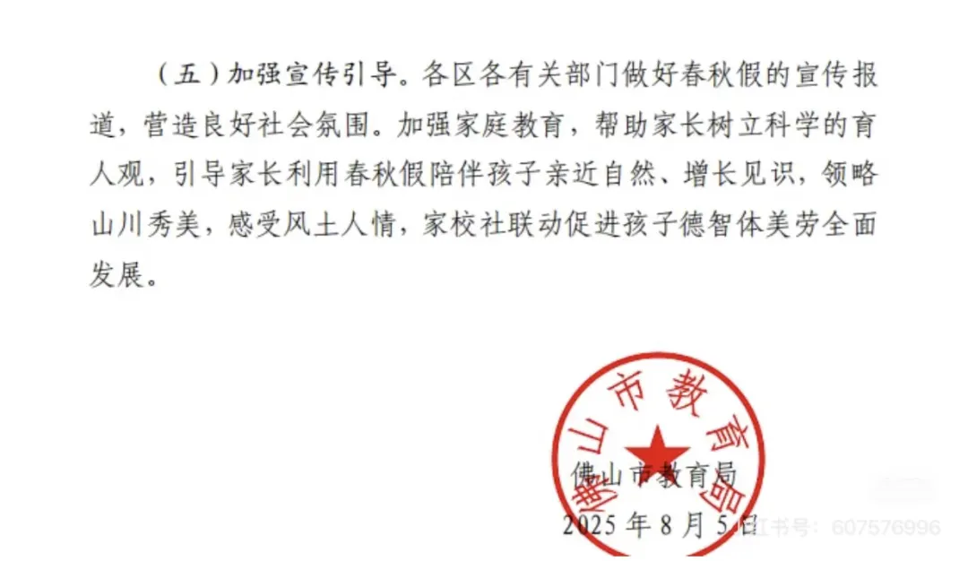佛山是广东省内首个明确提出在全市范围内试行中小学春秋假的城市。